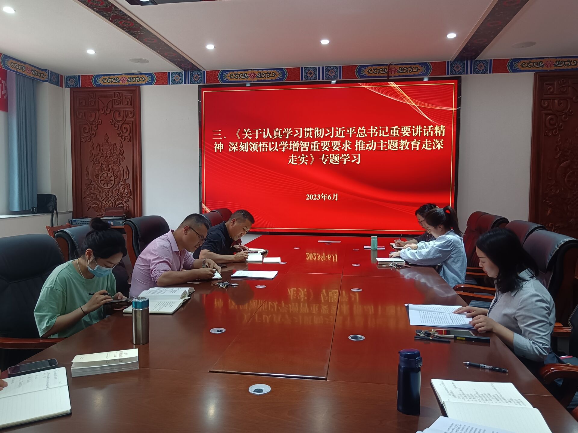 最后,霍续龙同志强调,这次主题教育不划阶段、不分环节,要结合学院实际,创造性开展工作,把理论学习、调查研究、推动发展、检视整改贯穿主题教育全过程,努力取得实效。一要利用学习强国等平台,原原本本学,逐字逐句学。二要紧紧围绕“专业+学科”调研、“格桑梅朵•铸魂”调研、党建品牌调研,用心用情用力。三是履职尽责,切实增强主题教育工作实效,做奋进新征程的实干者、践行者,推动学院高质量发展再上新台阶。