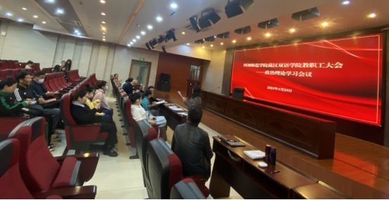 2024年4月24日13:50,藏汉双语学院在图书馆学术报告厅召开全体教职工政治理论学习会议。会议由学院副院长多杰扎西同志主持。