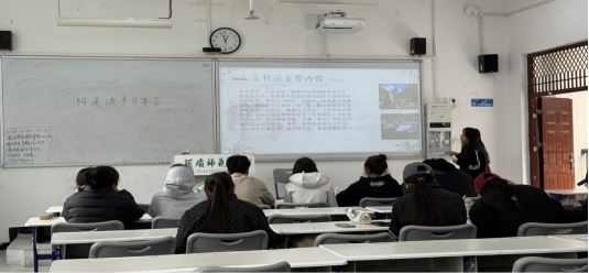 2025年10月22日中午12:30,藏汉双语学院在树人楼E202开展“阿来读书分享会”。本次展示环节共有24位同学参与。同学们准备充分,表达流利,展现了扎实的研究功底和良好的团队协作能力,有的还巧妙地融入了与主题相关的音乐和视频片段,让静态的文字变得生动立体。